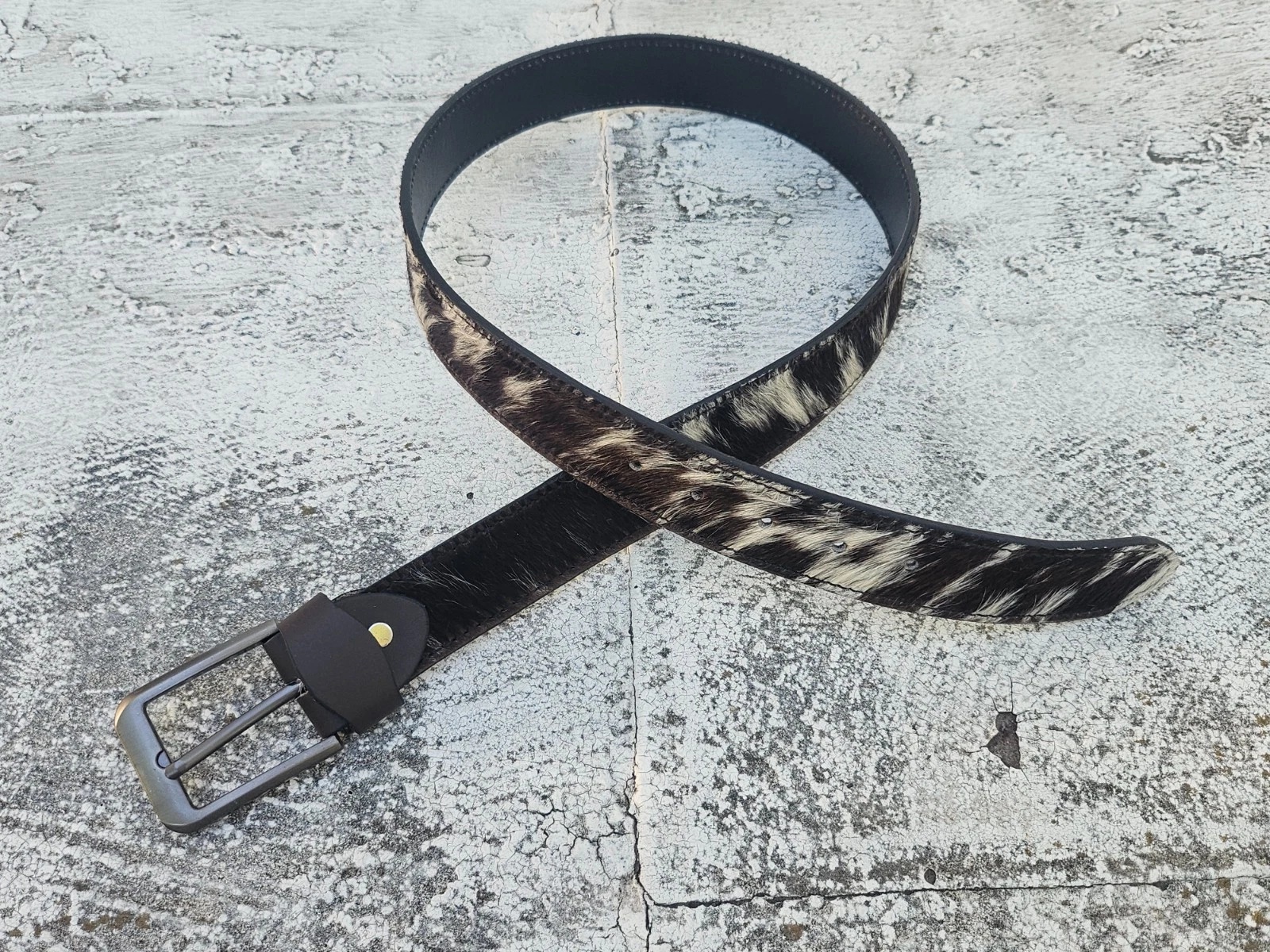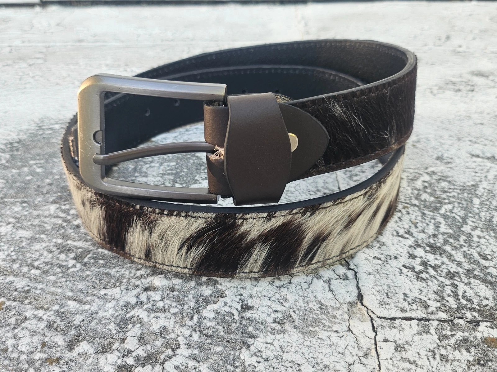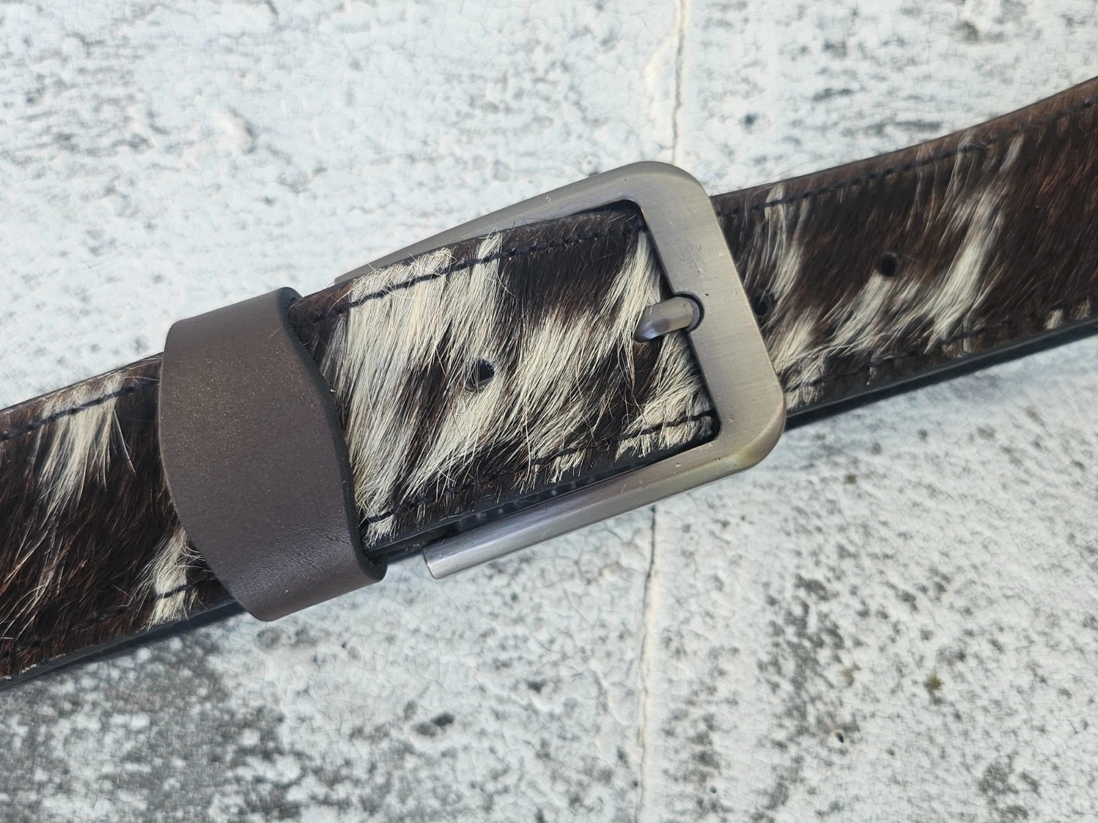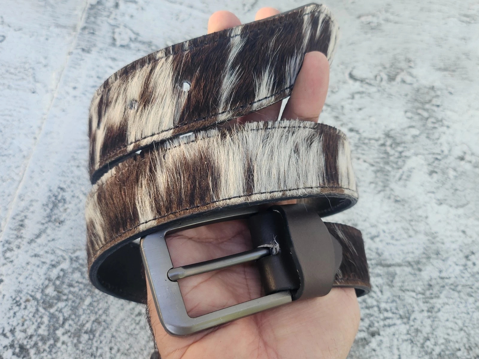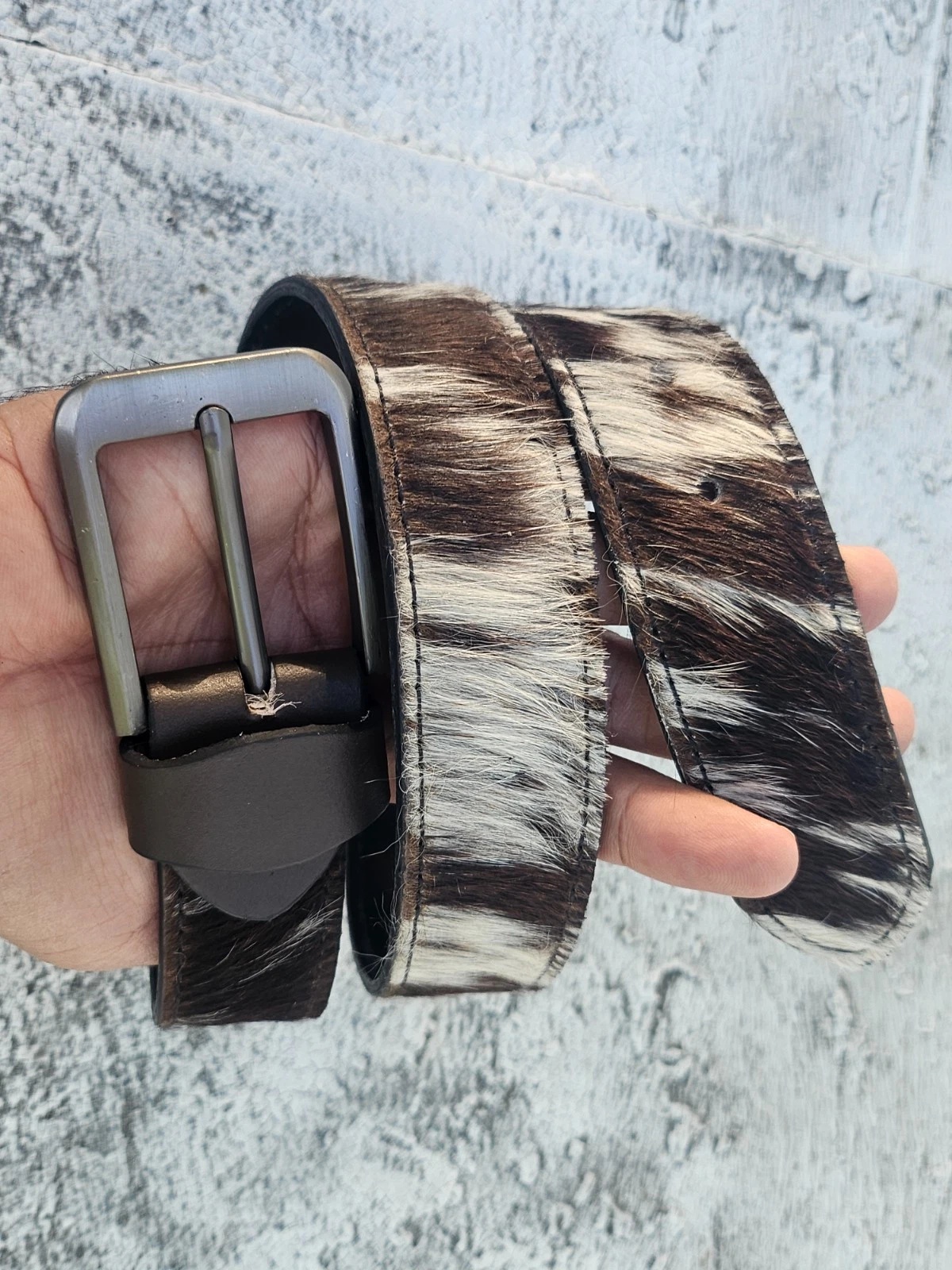 Handmade Waistband Real fur Cowhide Leather Belt Unisex Size 33-34 inches New